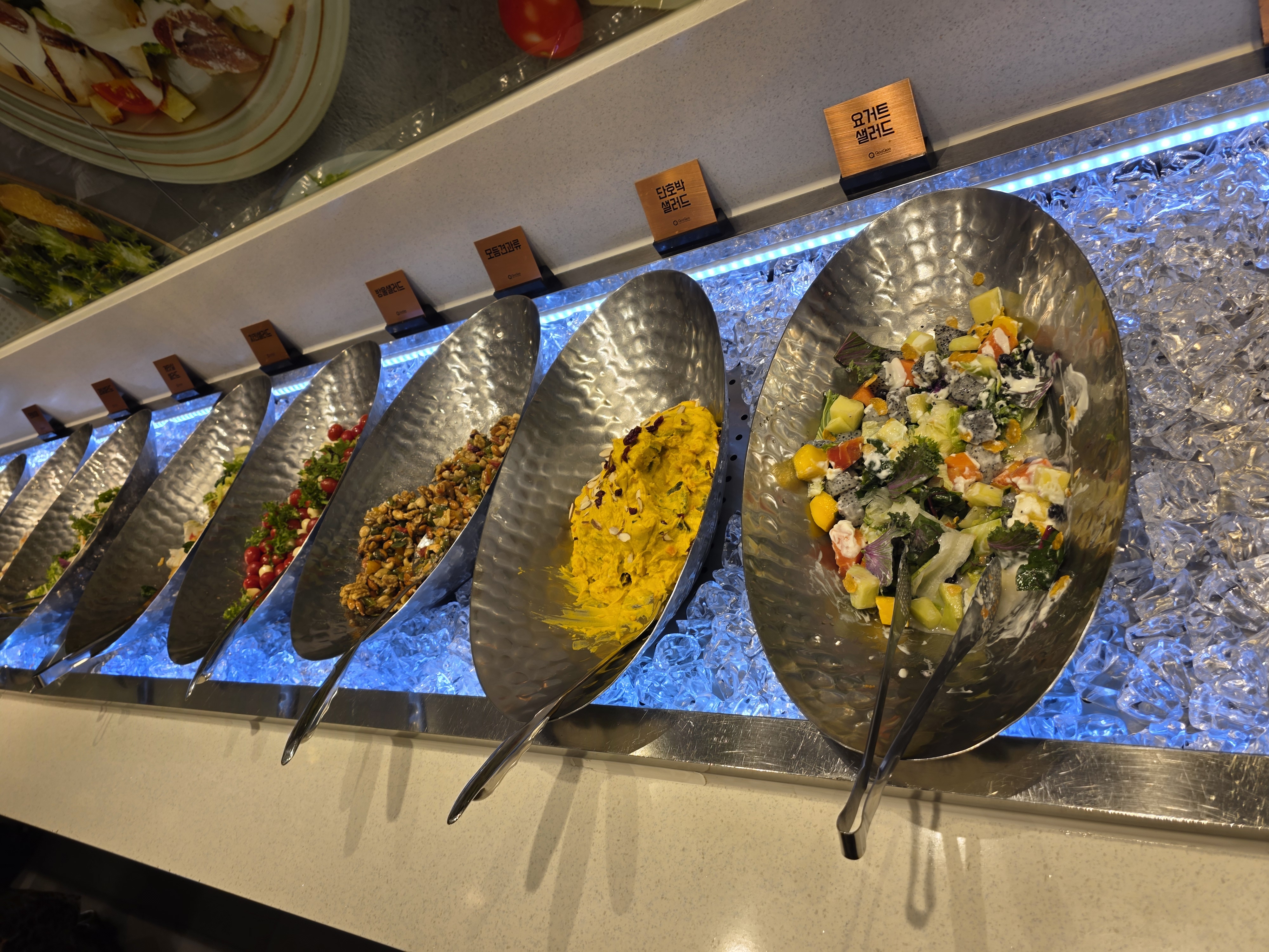 샐러드 바도 깔끔하게 구성되어 있고, 디저트로는 조각케이크, 팥빙수, 요거트까지 제대로 준비되어 있어서 초밥뷔페 그 이상의 만족감을 느낄 수 있었답니다.💯