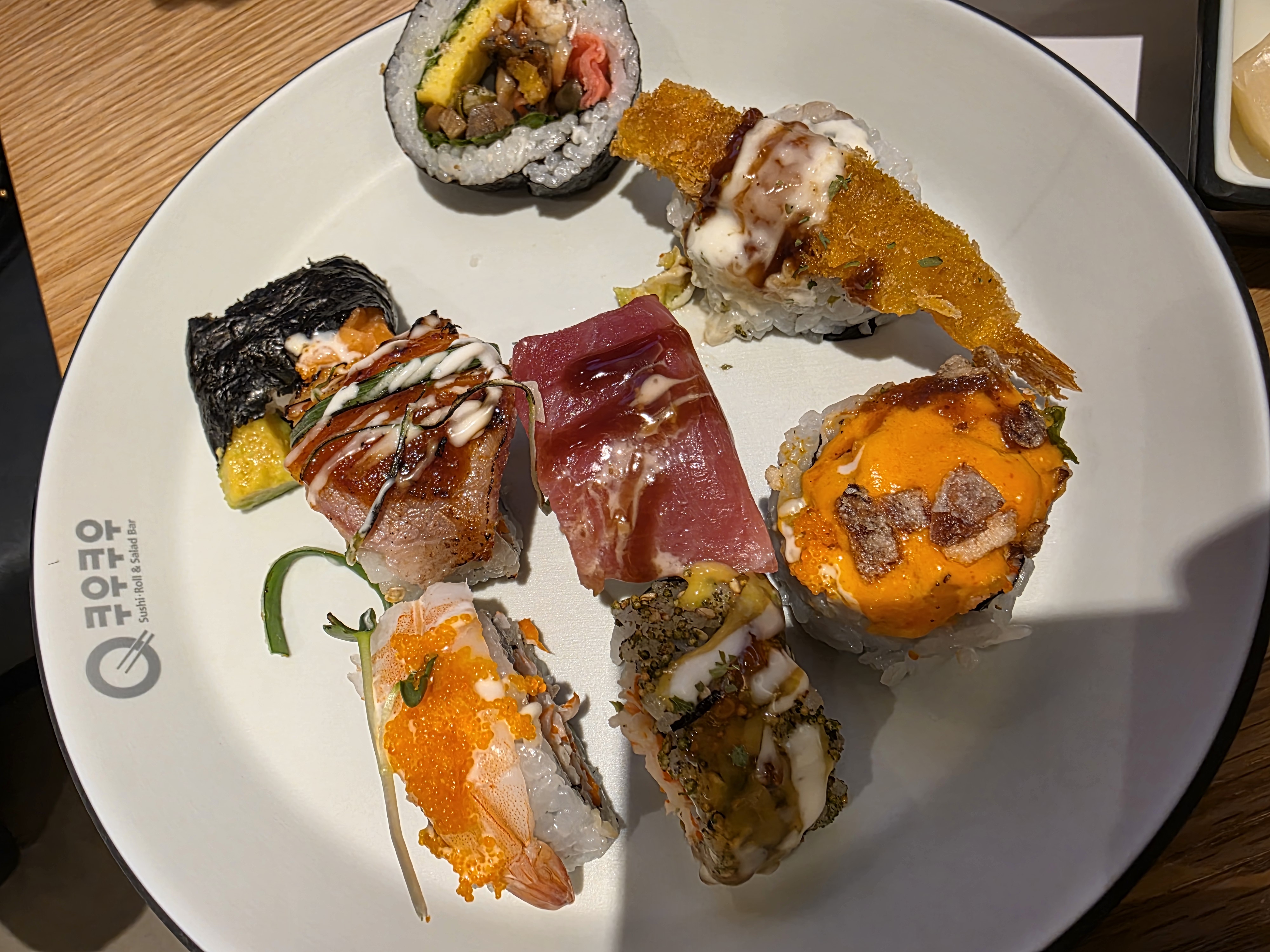 - 연어, 참치, 장어, 새우, 유부, 와규불초밥 등 인기 메뉴는 전부 있음